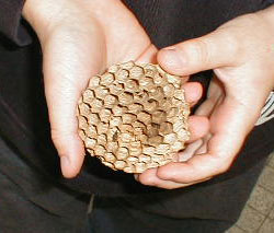Jocelyn montre un nid de guêpe.