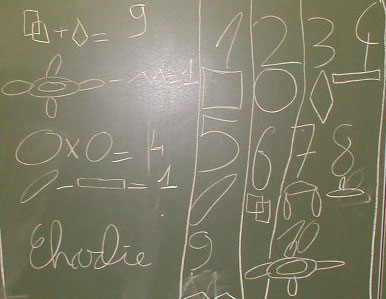 On fait de la lecture. Nous corrigeons les multiplications : Timothée, Charlie et Tony vont au tableau. Nous corrigeons la conjugaison. Nous rangeons les casiers, puis nous copions une poésie et nous allons aux échecs.