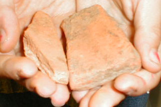 Marie présente des poteries gauloises.