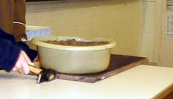 On a besoin d'une planche plate, d'une bassine remplie de sable et d'un marteau.